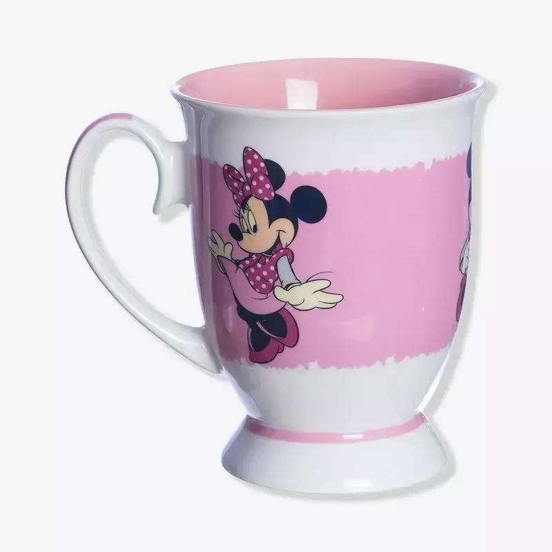 Produzida em cerâmica de alta qualidade, possui formato elegante no estilo “royal” com base levemente arredondada e alça confortável, garantindo praticidade e sofisticação. A estampa da Minnie, com fundo rosa suave, traz um toque divertido e encantador que conquista fãs de todas as idades.